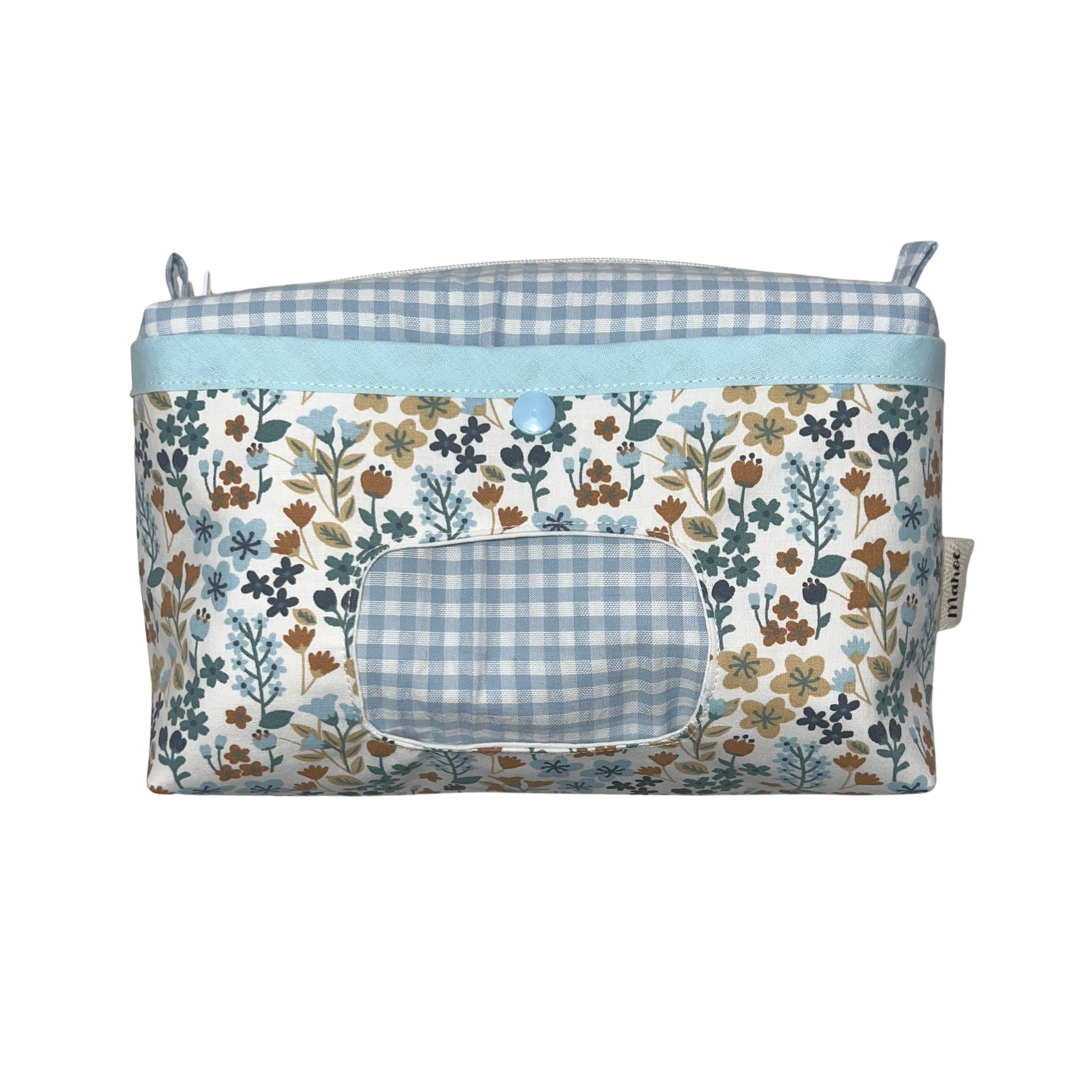 Pañalera neceser Seersucker celeste + Flores