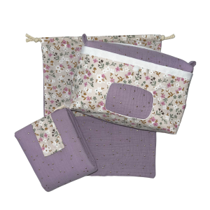 Pañalera neceser Seersucker vainilla mini + Flores verano
