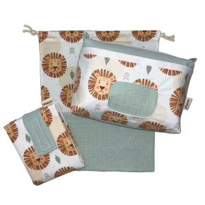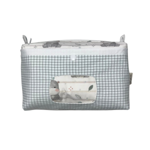 Pañalera neceser Hipopotamos + Seersucker gris mini